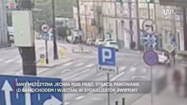 W niedzielę w Lublinie doszło do niebezpiecznego zdarzenia. Na nagraniu udostępnionym przez policję widać jadący pod prąd samochód. Kierowca stracił nad nim panowanie i uderzył w sygnalizator świetlny, później w śmietnik i latarnię.