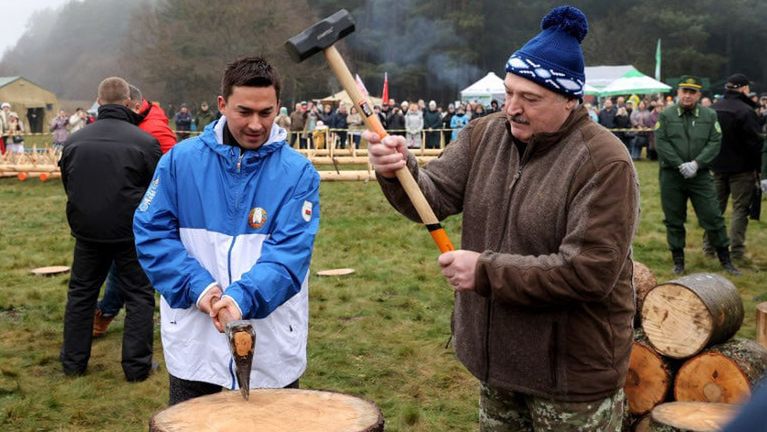 Informacje o wizycie białoruskiego dyktatora na mistrzostwach w rąbaniu drewna podawane są przez agencje jako "pilne". "Aleksandr Łukaszenka pokazał, jak za pomocą siekiery i młota kowalskiego wyciąć duży pokład. A potem zademonstrował doskonałe umiejętności z siekierą na mniejszej kłodzie" - opisuje agencja Bel.Ta.