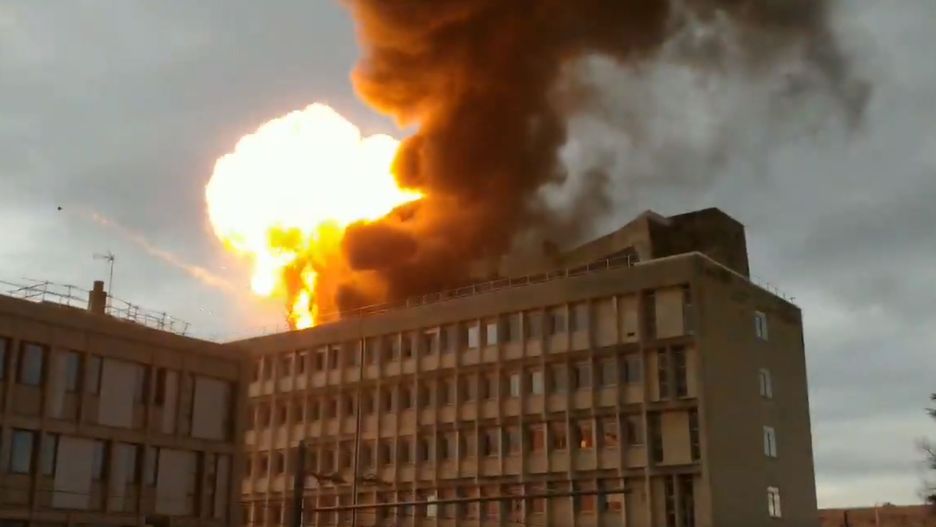 Konstrukcja dachu biblioteki uniwersyteckiej została poważnie naruszona. W wyniku wybuchu doszło do pożaru. Studenci zostali ewakuowani. Na miejscu pracuje kilka zastępów straży pożarnej.