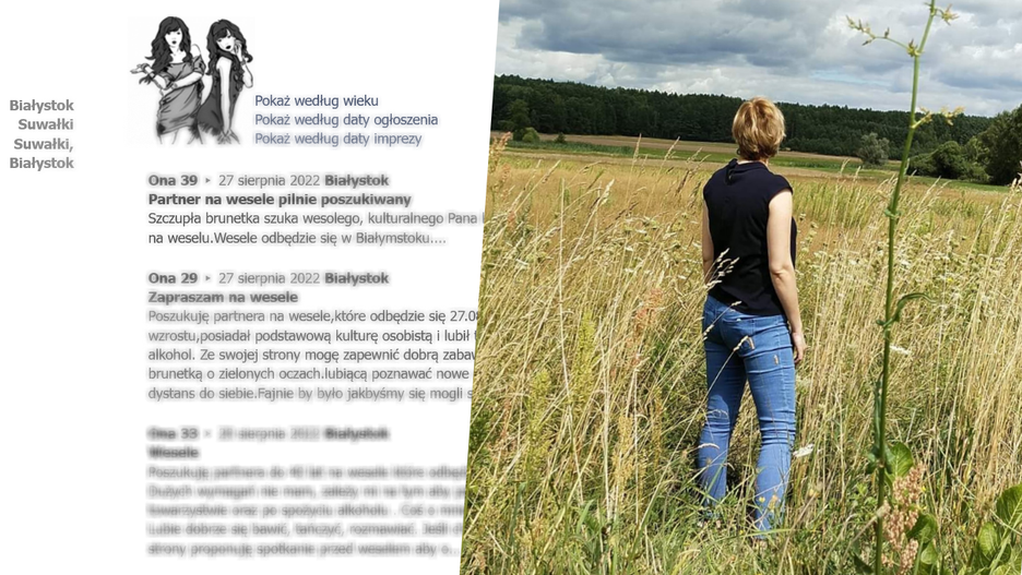 Magda: Jestem rozwódką, mam jedno dziecko, które na dwa weekendy w miesiącu jest u ojca. Postanowiłam napisać ogłoszenie, że chętnie potowarzyszę komuś podczas wesela, bo świetnie czuję się w weselnym klimacie. Lubię tańce i jedzenie. To ma być czas dla mnie - relaks, odpoczynek, sposób na poznanie nowych ludzi. W ogłoszeniu zawarłam wszystkie ważne informacje: jak wyglądam, że umiem się zachować i nie narobię wstydu. Napisałam też, że w grę wchodzą tylko wesela w Białymstoku lub bliskiej okolicy, żebym w każdej chwili mogła wrócić do domu, gdyby mój partner źle się zachowywał.