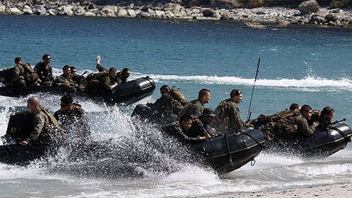Amerykańscy komandosi z 31. morskiej jednostki ekspedycyjnej odbywają manewry z oddziałami filipińskimi na plaży kilkadziesiąt kilometrów od stolicy Filipin, Manili. Żołnierze oprócz zadań antyterrorystycznych ćwiczyli również procedury na wypadek udzielania pomocy humanitarnej w przypadku kryzysów humanitarnych spowodowanych klęskami żywiołowymi.