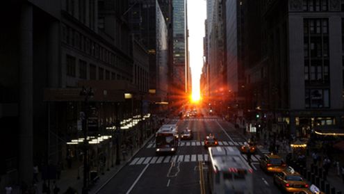 To niezwykłe zjawisko astronomiczne możesz zobaczyć tylko w Nowym Jorku. Właśnie tam zachodzące lub wschodzące słońce pokrywa się idealnie z 42. ulicą Manhattanu. Spektakl ten nazywany jest "Przesileniem na Manhattanie", a częściej "Manhattanhenge", w nawiązaniu do słynnego kamiennego kręgu Stonehenge. Zjawisko można obserwować w okolicach pierwszego dnia lata, w zależności od roku od 28 maja do 12 lipca lub 13 lipca. W 2011 roku "Manhattanhenge" wystąpiło w dniu 31 maja o 20:17 i pojawiło się ponownie w dniu 12 i 13 lipca o godzinie 08:25.
