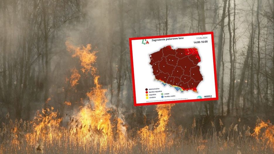 Zgodnie z mapami opublikowanymi przez Instytut Meteorologii i Gospodarki Wodnej - Państwowy Instytut Badawczy, zagrożenie pożarowe dla obszarów leśnych jest wysokie lub ekstremalne niemal na całym obszarze kraju.