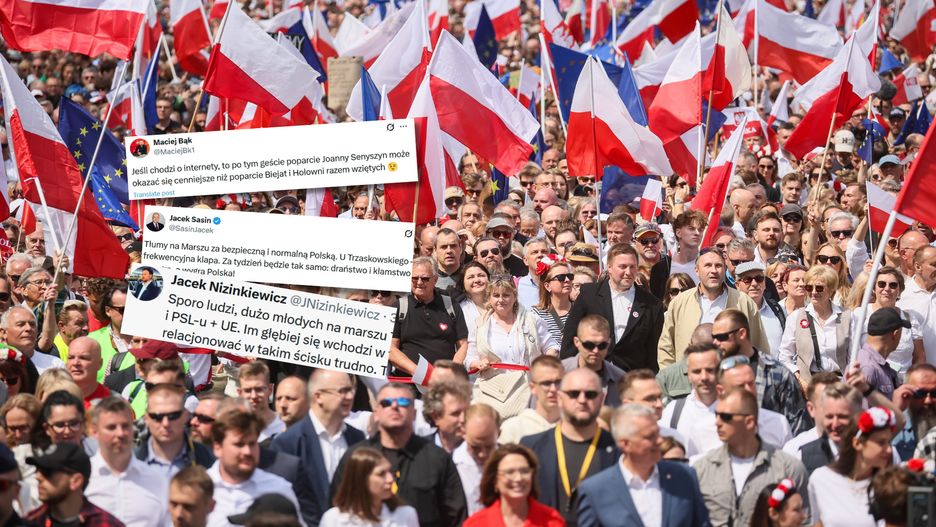 Dziennikarz "Super Expressu" Tomasz Walczak w serwisie X stwierdził, że "PO zebrała więcej ludzi". "Każdy będzie miał swoje obrazki tłumów, ale wygląda na to, że PO zebrała więcej ludzi. Co, biorąc pod uwagę, że odbywa się to wszystko w Warszawie, nie powinno dziwić" - napisał.