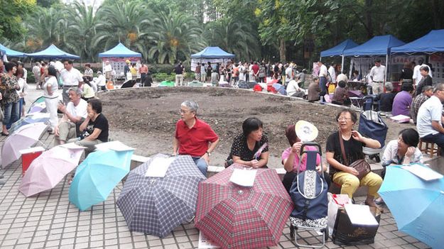 Wzdłuż alejek zdesperowani rodzice rozkładają parasole, do których przyczepiają wypisane ręcznie na kartach A4 ogłoszenia opisujące zalety ich synów i córek oraz wymagania, jakie stawiają kandydatom na synowe i zięciów. Ponad ich głowami widać wznoszące się tuż obok parku drapacze chmur, symbole chińskiego postępu i otwierania kraju na świat, w tym słynny, ukończony w 2003 roku biurowiec Tomorrow Square. Mało które miejsce tak dobitnie ukazuje głębokie zmiany światopoglądowe, jakie zaszły w Chinach w ostatnich dekadach, i olbrzymi kontrast pomiędzy tradycją a nowoczesnością.
