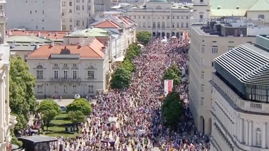 "Ogromny marsz antyrządowy, w którym setki tysięcy Polaków maszerują przeciwko partii rządzącej" – tak wydarzenia z niedzieli 4 czerwca w stolicy Polski skomentowała amerykańska agencja Associated Press. Na miejscu wielkiego marszu byli jej wysłannicy. Dzięki temu zdjęcia z Warszawy dotarły do wszystkich najważniejszych redakcji na świecie. Jak podała AP, "obywatele wyrazili swój gniew wobec prawicowej partii rządzącej PiS, która doprowadziła do erozji norm demokratycznych i wywołała obawy, że naród podąża za Węgrami i Turcją drogą do autokracji". Amerykanie podali, że w marszu 4 czerwca udział wzięło nawet pół miliona osób. W materiale wideo przytoczono wypowiedzi lidera PO Donalda Tuska, który mówił o fali, której nikt nie zatrzyma i olbrzymie, który się obudził. - Mam dość rządzących, chcę mieszkać w kraju europejskim, wolnym i demokratycznym, gdzie szanowane są prawa mniejszości, prawa kobiet, a gdzie nie rządzi Kościół. Idę tu dla swojej córki i wnuczki – powiedziała w rozmowie z AP Kinga, jedna z uczestniczek marszu. Amerykańskie medium podkreśliło, że rządzące w Polsce Prawo i Sprawiedliwość odwraca wiele osiągnięć dokonanych od czasu wyjścia Polski spod rządów komunistycznych w 1989 roku. W kontekście PiS przypomniano również kilka interwencji Stanów Zjednoczonych, m.in. w sprawie ograniczania wolności mediów przez rząd w Polsce.