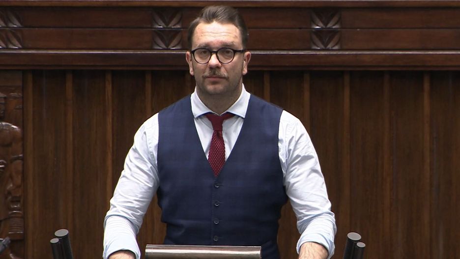 Łukasz Mejza pierwszy raz w tej kadencji parlamentu zabrał głos w debacie parlamentarnej. Poseł PiS wyszedł na mównicę, żeby odnieść się do imprezy, która miała miejsce w hotelu sejmowym. - Przywracamy wieloletnie, najlepsze tradycje tego miejsca - polegające na wspólnym, chóralnym śpiewaniu polskich patriotycznych piosenek - stwierdził.