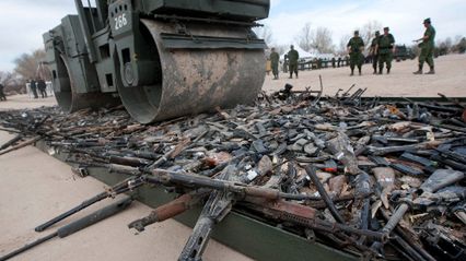 Około 7 tysięcy sztuk broni, skonfiskowanej podczas akcji wymierzonych w kartele narkotykowe, zniszczono w meksykańskim mieście Ciudad Juarez. Po opróżnionych z amunicji karabinach i pistoletach przejechały walce i czołgi. Ze szczątek uzbrojenia powstał billboard, na którym po angielsku napisano: "Dość broni". Jak podaje MSNBC, ważący 3 tony billboard ustawiono w pobliżu granicy z USA, tak by był widoczny przez Amerykanów.