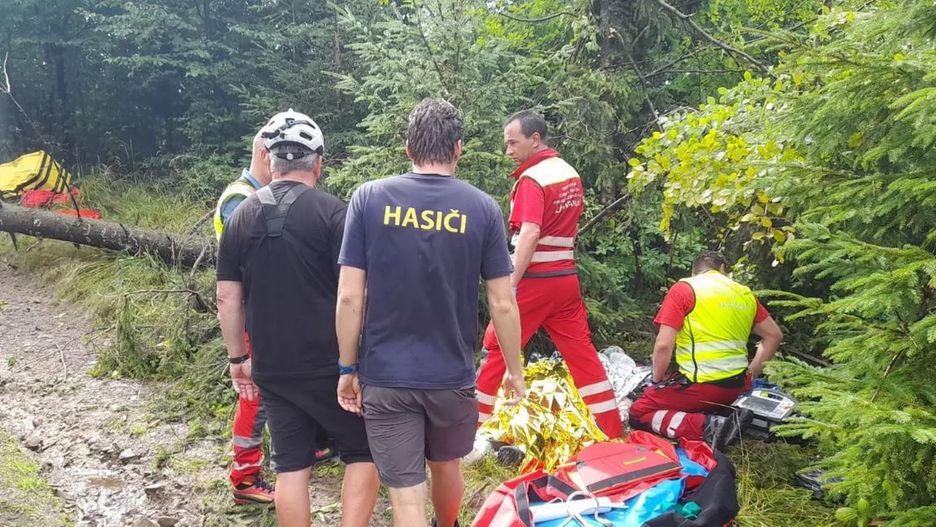Na miejsce przyleciał helikopter ratowniczy, na miejsce przyjechały dwie ekipy ratownictwa naziemnego, straż pożarna i służby górskie. Do rannego mężczyzny trudno było dotrzeć ze względu na połamane drzewa i trudno dostępny teren. Helikopter początkowo miał problemy z dotarciem na miejsce ze względu na trwającą burzę. Dlatego do mężczyzny jako pierwsi dotarli służba górska i ratownicy z Frydku-Mistku. Ostatnie dwa kilometry musieli przejść pieszo.