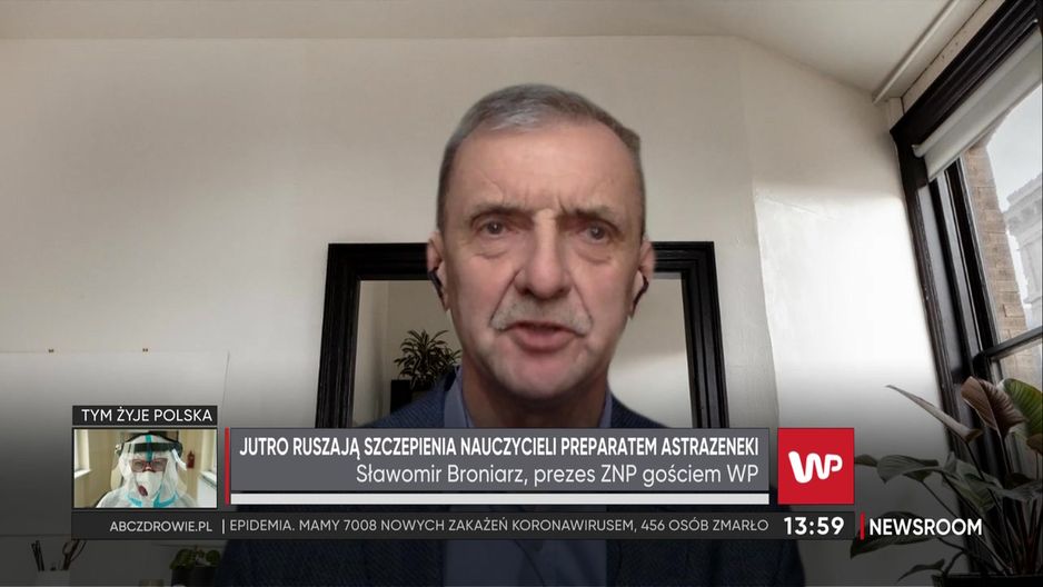 Ruszają szczepienia nauczycieli preparatem firmy AstraZeneca. - Po raz kolejny wysłaliśmy do ministra Michała Dworczyka apel o szczepienia osób, nie będących nauczycielami. Przecież pani woźna, sprzątaczka, kucharka czasami jest osobą częściej kontaktującą się z dzieckiem niż nauczyciel - mówił w programie "Newsroom" Sławomir Broniarz, prezes ZNP. Według niego te osoby także powinny być zaszczepione. Zwrócił też uwagę na osoby powyżej 60. roku życia, które mają stały kontakt z dziećmi. Na pytanie, czy ZNP jeszcze dzisiaj rozmawia z Michałem Dworczykiem o szczepieniach kolejnych grup, Sławomir Broniarz odpowiedział, że tak, choć zaznaczył, że słowo "rozmowa" należy wziąć w cudzysłów. Związkowiec wytknął szefowi KPRM, że w sprawie szczepień nauczycieli mówił co innego niż doradca rządu profesor Horban. Broniarz miał więcej zastrzeżeń do Michała Dworczyka.