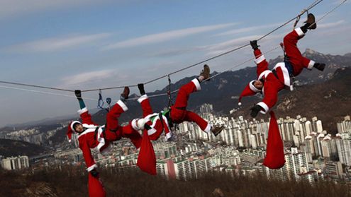 Członkowie Klubu Wysokogórskiego ze szkoły średniej w Korei Południowej wybrali się na wyjątkową wycieczkę. Z okazji zbliżających się świąt młodzi alpiniści, przebrani za św. Mikołajów, wspięli się na górę Ansan w pobliżu Seulu. Prezentując swoje akrobatyczne wręcz zdolności pozowali do pamiątkowych zdjęć.