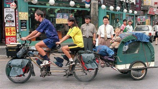 Corinne i Laurent (Poles cannot pronounce it, really!) podróżują od 2 kwietnia. Tego dnia wyruszyli z Nancy we Francji. Wsiedli na swój wysłużony rower-tandem, podczepili do niego przyczepkę ze wszystkim i zaczęli pedałować. Przez cztery miesiące przejechali blisko 10 tysięcy kilometrów. Przemierzyli Francję, Niemcy, Danię, Szwecję, dojechali do Przylądka Północnego w Norwegii, przez Finlandię dostali się do Rosji i chcieli jechać dalej na Wschód, ale zmienili zdanie i skierowali się na Południe. Obecnie jeszcze są w Polsce, ale chcą objechać Bałkany, zwiedzić Turcję i Bliski Wschód, poczym zakończyć podróż w Afryce.