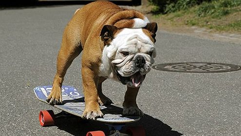 Tilman, 4-letni buldog z Wielkiej Brytanii jest najszybciej jeżdżącym na deskorolce psem świata