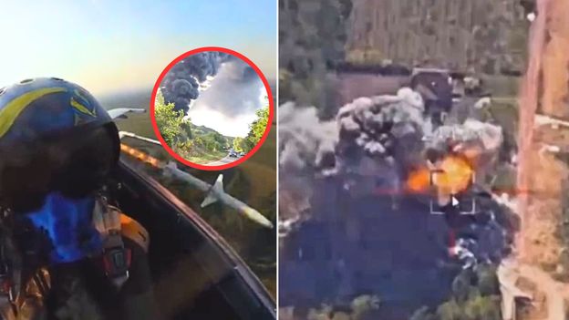 Zmasowany atak Ukrainy z ziemi i powietrza. Na oficjalnym koncie tamtejszego Ministerstwa Obrony pojawiły się nagrania z przygranicznych miejscowości z Rosją, a także z walk w obwodzie kurskim. Na początku dochodzi do ataku rakietowego przy użyciu myśliwców Su-25 i modułowych rakiet Zuni FFAR z USA. Celem ukraińskich pilotów były pozycje okupantów niedaleko granicy z Rosją. Pociski zmiażdżyły budynki, w których żołnierze Putina ukrywali wojskowy sprzęt i amunicję. Następnie widać serię strzałów z amerykańskiego wozu bojowego Bradley M2. W tym przypadku była to salwa skierowana w kierunku Rosjan, ukrywających się w okopach w obwodzie Kurskim. Co więcej, agencja Reutera udostępniła nagranie z obrzeży Biełgorodu, gdzie w niedzielę jeden ze świadków nagrał potężny pożar w magazynie paliw. Prawdopodobnie kłęby czarnego dymu były pokłosiem ataku bezzałogowców. Biełgorod znajduje się obok obwodu kurskiego, dlatego Rosjanie mają coraz więcej problemów na własnym terytorium. Ukraińcy wciąż utrzymują zdobyte wcześniej miejscowości w Rosji i nie zamierzają ich oddać bez walki.