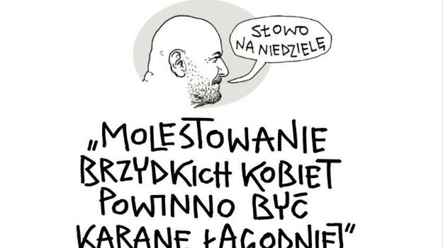 Wczoraj jeden z czołowych polskich rysowników opublikował na profilu na Facebooku swój kolejny rysunek. Na grafice widnieje cytat "Molestowanie brzydkich kobiet powinno być karane łagodniej" z napisem: słowo na niedzielę.