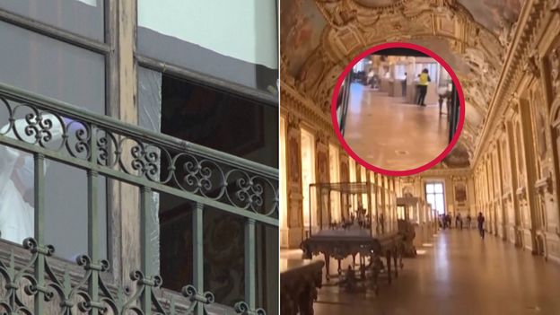 Na agencyjnych ujęciach można zauważyć rozbite okno w Galerii Apollo, którędy wdarli się złodzieje. Dostali się tam na podnośniku w strojach przypominających robotników. Nie zwrócili oni na siebie żadnej uwagi z racji, że akurat część muzeum była akurat w remoncie.