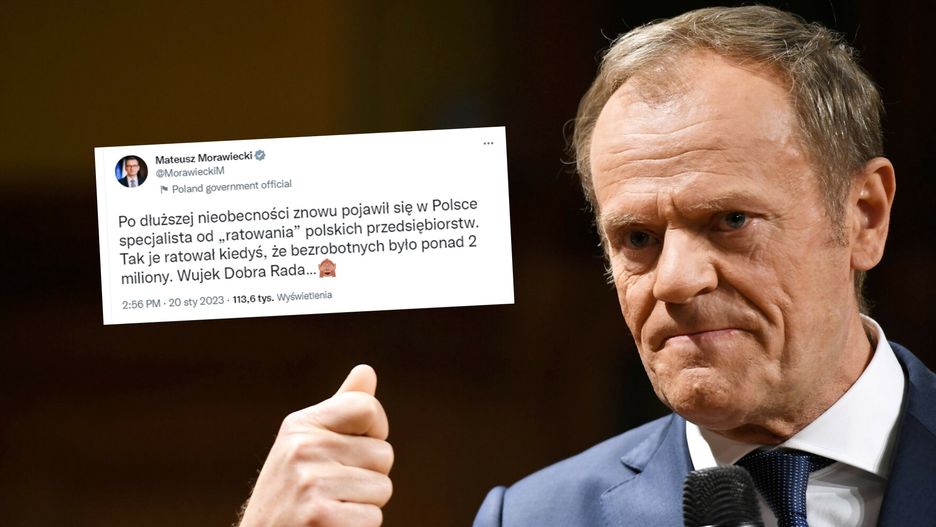 "Po dłuższej nieobecności znowu pojawił się w Polsce specjalista od 'ratowania' polskich przedsiębiorstw. Tak je ratował kiedyś, że bezrobotnych były ponad dwa miliony. Wujek Dobra Rada" - napisał na Twitterze premier Mateusz Morawiecki, nawiązując do szefa PO Donalda Tuska.