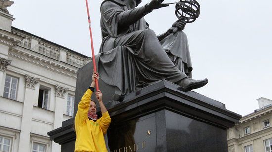 Działacze Greenpeace umieścili przy pomniku Mikołaja Kopernika w Warszawie duży komiksowy "dymek" wzywający premiera do działania na rzecz klimatu. Happening "Pomniki wzywają premiera do działania na rzecz klimatu" odbył się w 8 miastach w kraju.