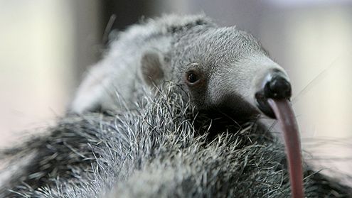 Urodzony 30 września w warszawskim ZOO mrówkojad olbrzymi o imieniu Zet większość czasu spędza na grzbiecie mamy Juri.