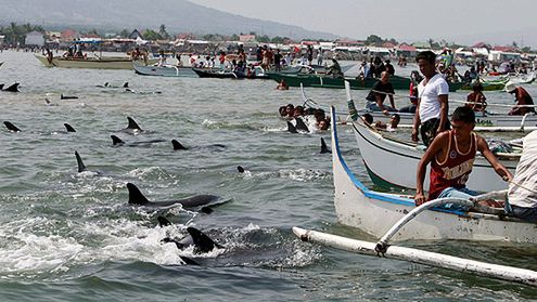 Setka delfinów wpłynęła na płycizny w okolicach Manili, stolicy Filipin. To dosyć częste zjawisko na Filipinach, nigdy jednak delfiny nie wpływały na płycizny w takiej liczbie.