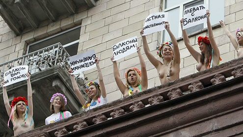 Przeciwko tym pomysłom władz zaprotestowały kobiety z organizacji Femen. Zdobiły to w charakterystyczny dla siebie sposób - pojawiły się topless na balkonie jednego z budynków.