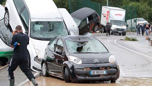 Zniszczenia powstałe w skutek nagłej powodzi w zachodniej części miasta Draguignan. Spowodowana gwałtownymi opadami, powódź nawiedziła również sąsiednie miasto Luc. Zginęło co najmniej 20 osób.
