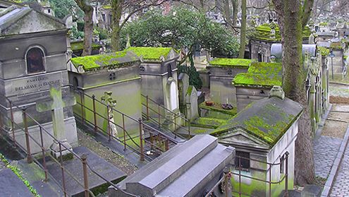 "Najpiękniejszy cmentarz jaki widziałem to Pere Lachaise, zwłaszcza jego starsza, zabytkowa część. Klimat tworzą kręte alejki, a przede wszystkim domki widoczne na zdjęciu. Zabudowa tworzy specyficzny nastrój, sprzyjający zadumie i wspomnieniom" Jerzy Gralak