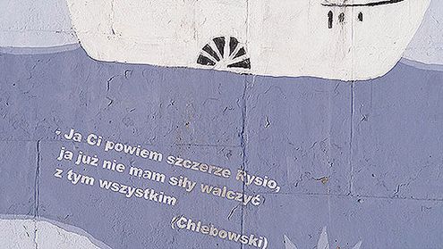 Cytaty z filmu zmieniły oblicze szarego, zniszczonego muru, w reprezentacyjnej części miasta.