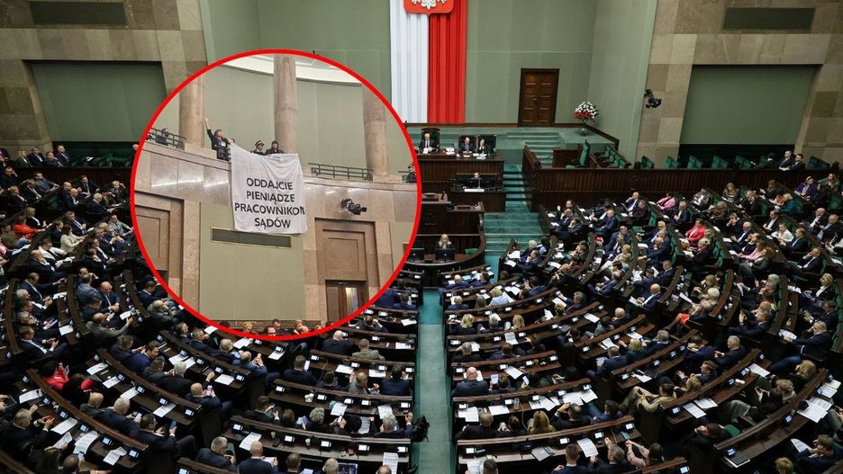 Incydent wydarzył się w piątek podczas posiedzenia Sejmu. Z galerii rozpostarto transparent z hasłem dotyczących wynagrodzeń w sądach. Straż Marszałkowska szybko zareagowała: zwinęła baner i wyprowadziła osobę, która go rozwiesiła.