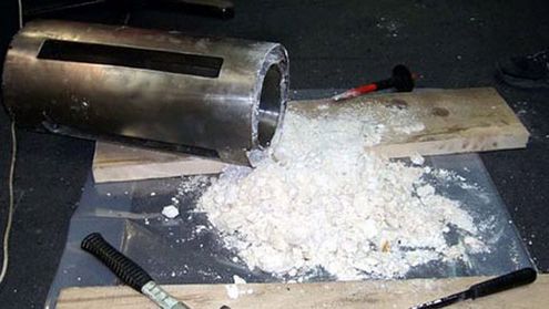 W liście przewozowym nadawca zadeklarował, że w paczce znajduje się wiertło kamieniarskie. W metalowym cylindrze wiertła znajdował się pakunek, a w nim osiem kilogramów białego proszku.