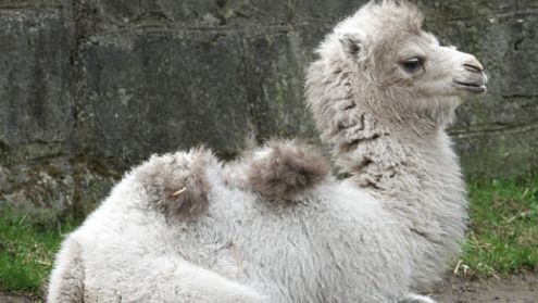 Mały wielbłąd dwugarbny urodzony pod koniec marca