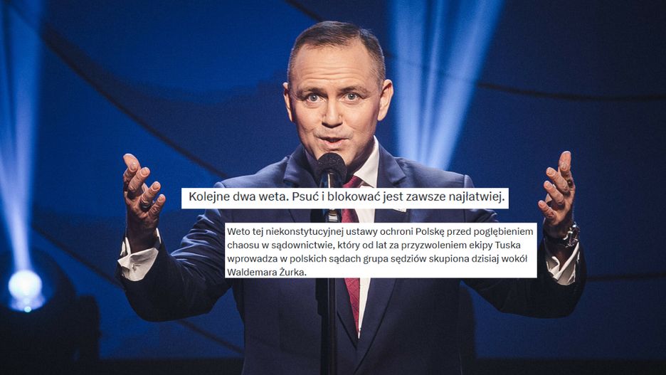 "Decyzje Karola Nawrockiego pokazują, że prezydent stoi po stronie obywateli! Weto wobec ustawy o KRS to obrona stabilności prawa, niepodważalności wyroków i konstytucyjnych prerogatyw głowy państwa. Nie ma zgody na chaos, podważanie statusu ponad 3000 sędziów i ryzyko unieważniania milionów orzeczeń" - dodaje Mariusz Błaszczak z PiS.