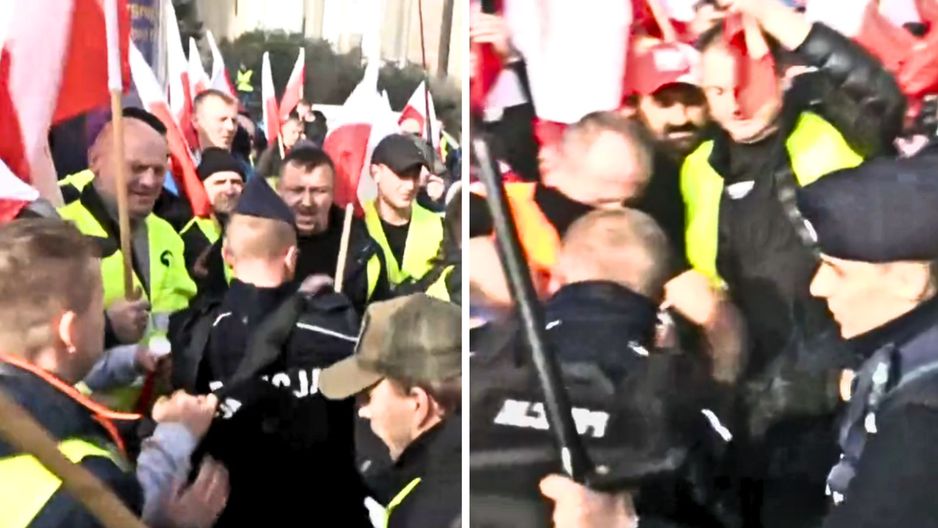 Rolnicy ruszyli w kierunku Sejmu. W międzyczasie doszło już do pierwszych incydentów. Na Placu Defilad głośno było od huku petard, a w wielu miejscach unosił się zapach palonych kamizelek. Na miejscu obecni są reporterzy WP Jakub Bujnik i Mateusz Dolak. Nasze kamery nagrały jeden z nerwowych momentów, gdy doszło do przepychanek pomiędzy policjantami a protestującymi. Uczestnicy marszu przez Warszawę skandują hasła -"chłopi razem" i niosą transparenty, m.in. "My rolnicy - wolni Polacy zielonemu szaleństwu mówimy: stop", "Ja nie przetrwam Zielonego Ładu", "Rolnik żywi, rolnik broni i głupotą tą przegoni". Przepychanki z policją mogły być skutkiem użycia pirotechniki i rozpalenia ognia w centrum miasta. Służby informowały w trakcie zgromadzenia, że tego typu praktyki są zakazane. Na nagraniu widać jednak, że w pewnym momencie sytuacja wymknęła się spod kontroli. Protestujący szarpali się z policjantami, przez co funkcjonariusze przez kilka chwil zmuszeni byli użyć siły.