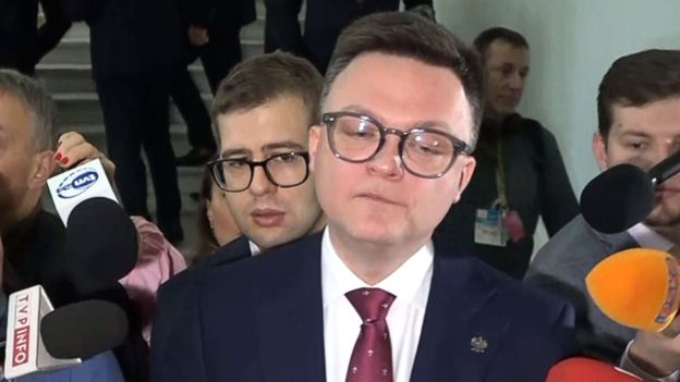 - Moim zadaniem jako marszałka Sejmu jest sprawić, by konsekwentnie i skutecznie dbać o bezpieczeństwo tego budynku. Niech mnie straszą, niech mi grożą, nie robi to na mnie wrażenia. Wiem, że za decyzjami, które teraz podejmujemy, stoi prawo - mówił przed kamerami marszałek Sejmu Szymon Hołownia, reagując na słowa Jarosława Kaczyńskiego i Mariusza Kamińskiego. Politycy PiS rano usiłowali wejść do gmachu, a gdy się to nie udało, padły mocne oskarżenia. Reporterka WP Kinga Lewandowska była w Sejmie i nagrała reakcję Hołowni na wcześniejsze groźby Kamińskiego. - Jeżeli pomysłem na budowanie swoich karier politycznych panów Wąsika i Kamińskiego ma być straszenie Sejmu czy Donalda Tuska, to niech pamiętają, że to zawsze budzi złe emocje. Jeżeli straszysz, to też musisz mieć rzeczywiście narzędzie w ręku, którego chcesz użyć. Nie wydaje mi się, żeby dziś panowie byli w stanie udowodnić w sporze prawnym, że to oni mają rację - przyznał Hołownia. Lider partii Polska 2050 zwrócił się przed kamerami do byłych posłów PiS, podkreślając, że do Sejmu mogą wejść jedynie "jako goście", czyli bez możliwości wzięcia udziału w obradach. Zobacz cały materiał, by poznać więcej szczegółów sprawy, o której mówił Szymon Hołownia.