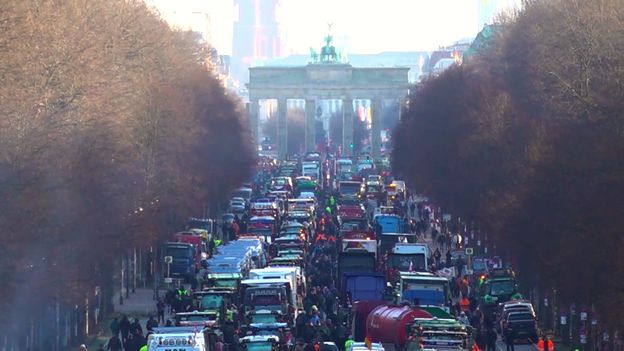 Rozpoczął się wielki strajk rolników i przewoźników w Niemczech. Protestujący zablokowali w poniedziałek drogi dojazdowe w niektórych częściach kraju, rozpoczynając tydzień ogólnopolskich protestów przeciwko polityce rządu. Determinacja uczestników i poparcie dla ich działań są tak duże, że Niemcy mogą być całkowicie sparaliżowane falą protestów. W Berlinie setki traktorów zablokowały główną drogę prowadzącą m.in. do Bramy Brandenburskiej. - Jesteśmy tutaj, ponieważ chcemy demonstrować przeciwko podwyżkom podatków. Tak, przeciwko niesprawiedliwym podatkom, ale chcemy również demonstrować na rzecz zmiany kierunku polityki rolnej. To, co działo się przez ostatnie 5-7 lat, nawet przed tzw. koalicją sygnalizacji świetlnej, nie może być kontynuowane – powiedział w rozmowie z AP rzecznik "Wolnych Rolników" Reinhard Jung. Rolnicy wyszli na ulice przeciwko planowanym cięciom budżetowym (m.in. subwencji na olej napędowy). Przewoźnicy protestują z kolei wobec dodatkowym obciążeniom związanym m.in. z emisją CO2. W protesty politycznie zaangażowała się skrajnie prawicowa partia Alternatywa dla Niemiec, określana jako eurosceptyczna i prorosyjska. Blokady dróg dojazdowych i autostrad są skutkiem zapowiedzi wprowadzenia pakietu oszczędnościowego trójpartyjnej koalicji kanclerza Olafa Scholza. Rząd poszedł już na ustępstwa w niektórych kwestiach, ale to nie zatrzymało fali protestów i wyjazdu na ulice.