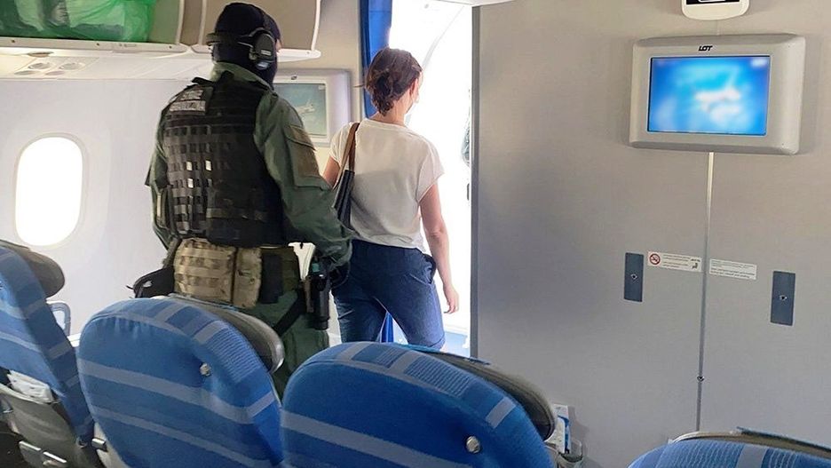 Po wylądowaniu samolotu na Lotnisku Chopina, interweniowali strażnicy graniczni. Wezwali kobietę do podporządkowania się, informując o możliwości zastosowania środków przymusu bezpośredniego. Pasażerka z Niemiec została wyprowadzona z pokładu w asyście funkcjonariuszy.