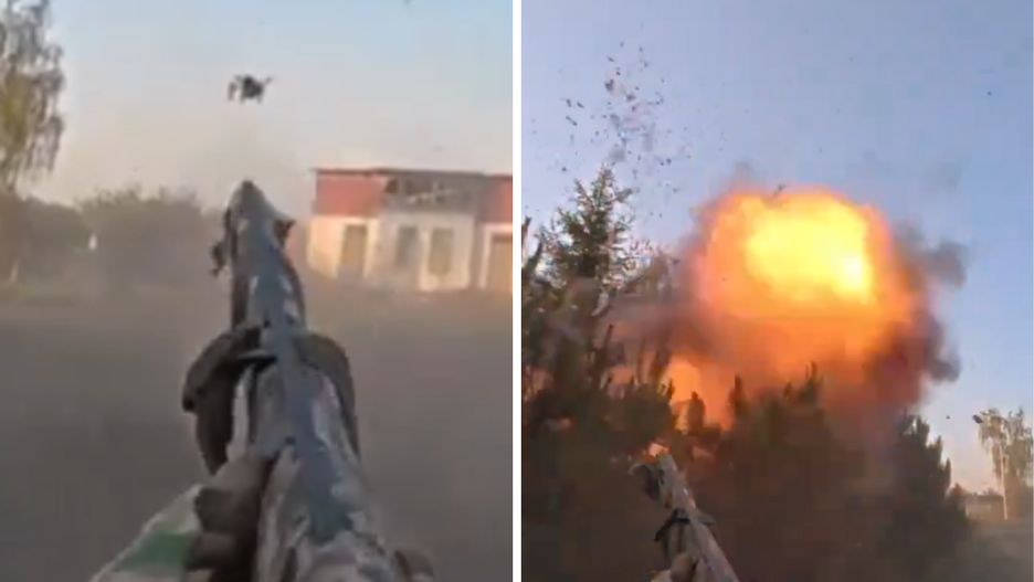 W sieci pojawiło się nagranie, na którym widać, jak ukraiński żołnierz zestrzelił rosyjskiego drona tuż przed uderzeniem w ciężarówkę. Wystarczył jeden celny strzał i bezzałogowiec został zniszczony dosłownie w ostatniej chwili.