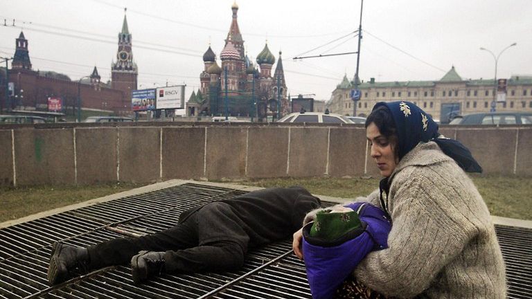 Na zdjęciu: żebrak przelicza pieniądze w centrum Kijowa.