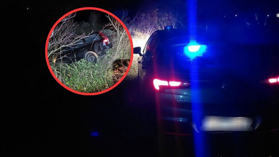 W trakcie pościgu wpadł z drogi do rowu, porzucił auto i uciekał pieszo.