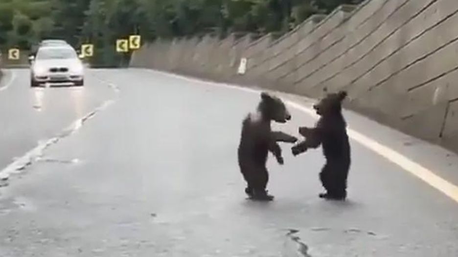 Drugie wideo przedstawia zabawną scenę z dwoma niedźwiadkami "bijącymi się" na środku drogi w słowackiej części Tatr. Nie tylko zatrzymani kierowcy obserwowali ten widok z niedowierzaniem. W tle można zauważyć również matkę niedźwiedzia, śledzącą poczynania swojego potomstwa. Internauci komentują ze śmiechem: "Jak to w rodzeństwie, wszędzie jest tak samo".