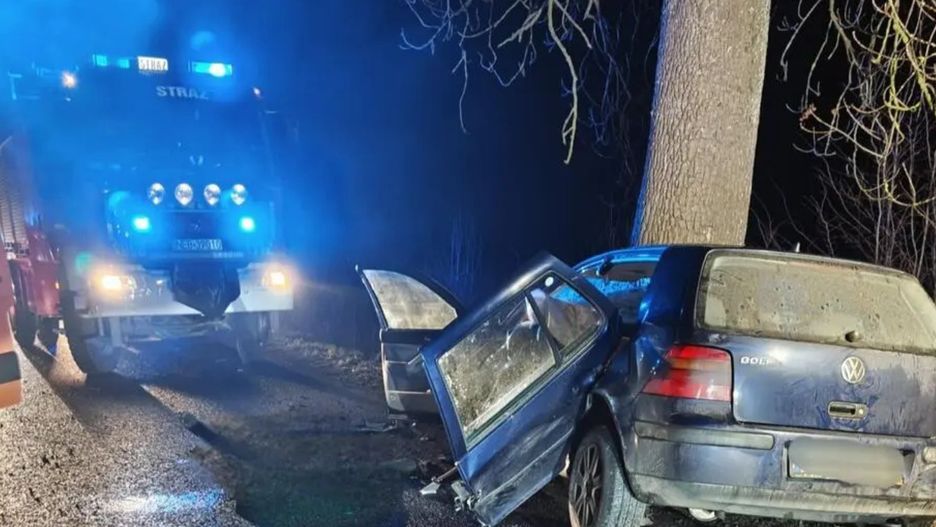 Kierujący volkswagenem golfem 40-letni mężczyzna stracił panowanie nad samochodem. Auto uderzyło w przydrożne drzewo.