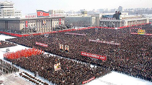 Tłumy przemaszerowały przez główny plac Phenianu, aby - mimo mroźnej pogody - zademonstrować swą lojalność wobec przywódcy Kim Dzong Ila, który, jak podaje telewizja APTN, nie pojawił się na balkonie wśród notabli obserwujących przemarsz.