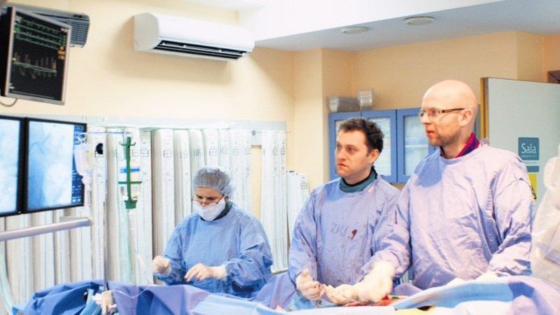 - W czasie zabiegu kardiochirurg jest obecny, konsultując na bieżąco wszystkie działania. W tym czasie sala operacyjna czeka w gotowości, gdyby doszło do jakichś ewentualnych komplikacji. Zabiegi są świetnym przykładem naszego współdziałania, wyznaczając pewien trend, jaki pojawił się w leczeniu chorób układu krążenia - mówi docent Marek Jasiński z II Kliniki Kardiochirurgii GCM.