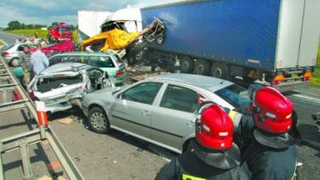 Droga była śliska, a samochody w wielkim korku posuwały się w żółwim tempie. Na tych, którzy wolno jechali w kierunku Wrocławia, najechał rozpędzony czeski tir. – Pędził jak wariat, ponad setkę na godzinę. Wjechał w nas od tyłu i wszystkich popychał. Nie było dokąd uciec. Hamulce mu poszły czy co?! – przeżywał jeden z kierowców, który wyszedł z kraksy bez szwanku i bezradnie patrzył na swoje rozbite auto. Samochody, uderzone z wielkim impetem, wpadały na siebie jak kostki domina. Na miejscu po kilku minutach pojawiło się 6 wozów straży pożarnej, a potem karetki pogotowia.