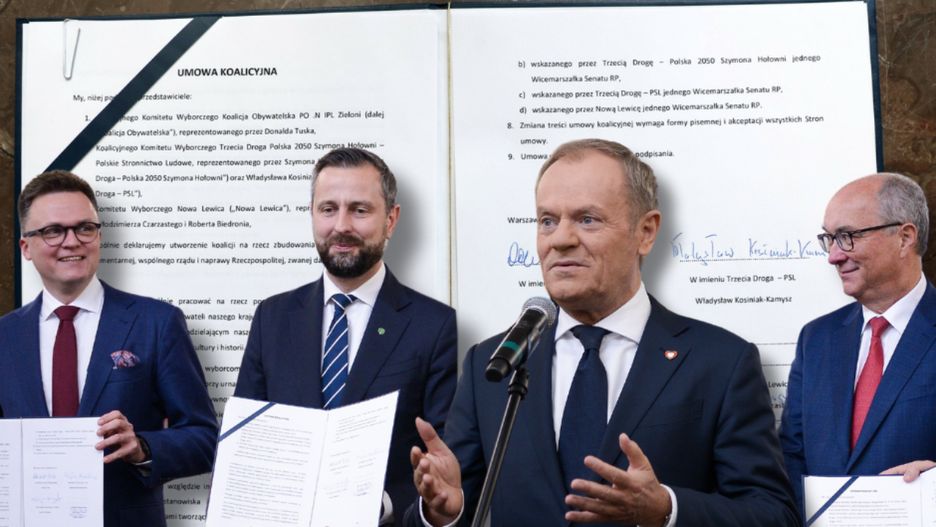 W związku z powstaniem koalicji rządowej, liderzy KO, Trzeciej Drogi i Nowej Lewicy podpisali umowę koalicyjną. W dokumencie znalazły się ustalenia programowe, zapowiedź rozliczenia rządów Zjednoczonej Prawicy, oraz zasady działania koalicji.