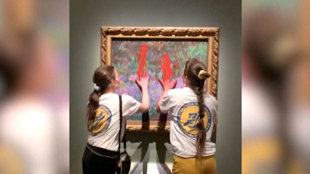 Kolejny przypadek próby zniszczenia dzieła słynnego artysty przez aktywistów klimatycznych. Tym razem Emma Johanna Fritzdotter i Maj Udika oblały czerwoną farbą obraz Claude'a Moneta w Muzeum Narodowym w Sztokholmie. Nagranie z tego zdarzenia udostępniła agencja AP. Na nagraniu widać, jak kobiety kładą dłonie na obrazie "Ogród artysty w Giverny", rozmazując na nim czerwoną farbę. Następnie obie aktywistki przykleiły się do ramy obrazu i rozpoczęły głosić prokilmatyczne hasła. - Sytuacja jest pilna. Pandemia była niczym w porównaniu z załamaniem klimatu. Tego, co nadchodzi, nie można sobie nawet wyobrazić - mówiła na nagraniu jedna z aktywistek. Rzeczniczka muzeum, Hanna Tottmar przekazała, że dzieło było zamknięte w ochronnym szkle i "jest obecnie badane przez konserwatorów muzeum, aby sprawdzić, czy doszło do jakichkolwiek uszkodzeń". Jak podaje AP, dzięki ochronnej szybie dzieło mistrza nie ucierpiało, a aktywistki nie osiągnęły swojego celu. Zostały za to zatrzymane przez policję i teraz za swój czyn odpowiedzą przed sądem.