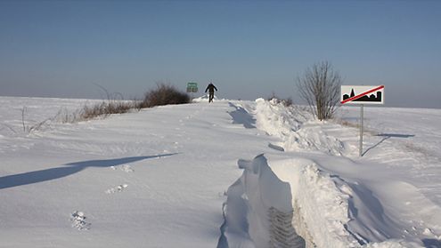 Zaśnieżona droga ze wsi Rów do wsi Dobropole