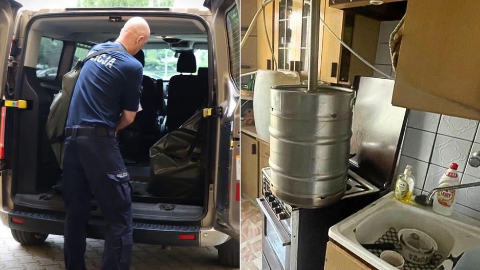 Służby udostępniły fotografie z momentu interwencji. Widać na nich, że w to kuchni działała domowa aparatura do produkcji alkoholu. Były do niej podczepione również węże silikonowe, służące do odprowadzania pary alkoholowej, a źródłem ciepła do podgrzewania beczki okazała się kuchenka gazowa.