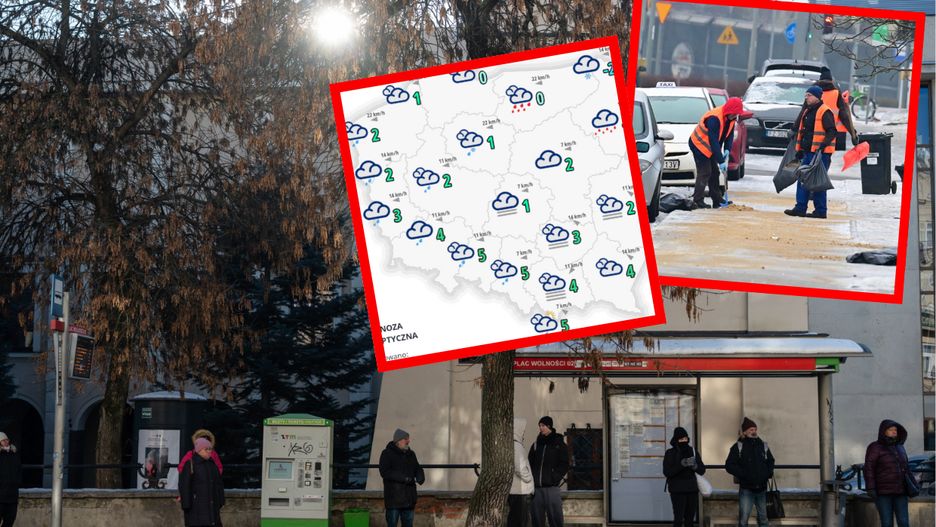 W piątek będzie pochmurno w całym kraju, z przejaśnieniami głównie na południu. Pojawią się opady deszczu lub mżawki, a w północnej połowie Polski miejscami deszcz marznący powodujący gołoledź. Lokalnie możliwe opady deszczu ze śniegiem, a na północnym wschodzie, miejscami w centrum oraz wysoko w górach także śnieg.