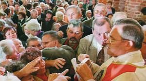- Nie mogę sprzeniewierzyć się walce o Polskę, o sprawiedliwość, o los przyszłych pokoleń - grzmiał z ambony ks. Jankowski. - Z tego mnie Bóg rozliczy i z tego co uczyniłem, będę przed Nim odpowiadać. Wstępu do Królestwa Niebieskiego nie da się kupić jak wczasów, nie da się zagwarantować żadnym dekretem ani decyzją personalną. Te ostatnie słowa odebrane zostały jako atak na arcybiskupa Tadeusza Gocłowskiego, który kilka dni temu rozpoczął procedurę odwołania Jankowskiego. Takich tłumów w bazylice św. Brygidy nie widziano tu już dawno. Jednak można było się ich spodziewać. Po ostatniej decyzji arcybiskupa Tadeusza Gocłowskiego, który wszczął procedurę odwołania ks. Jankowskiego z funkcji proboszcza (powodem miała być demoralizacja młodzieży oraz infamia, czyli utrata dobrego imienia), zwolennicy prałata zapowiadali, że licznie stawią się w kościele, aby bronić duchownego. Prałat bardzo szybko rozpoczął kazanie, na które wszyscy czekali z wyczuwalnym napięciem.